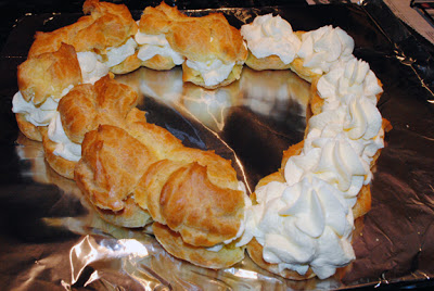 1. Melt butter in 1 cup boiling water. Add flour and salt all at once; stir vigorously. Cook and stir till mixture forms a ball that doesn’t separate. Remove from heat; cool slightly. Add eggs one at a time, beating after each addition until smooth.