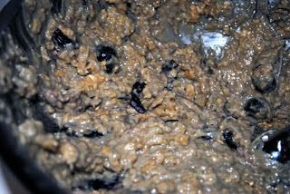 2. In large bowl, beat brown sugar, shortening and granulated sugar on medium speed of electric mixer until creamy. Add egg, water and vanilla; beat well. Add combined oats, flour, salt and baking soda; mix well. Smash blueberries in bowl and mix in.