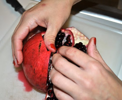 That's a cool way to cut them- I always use these instructions that you have to put them in water to pull the pomegranate apart. This looks simpler!