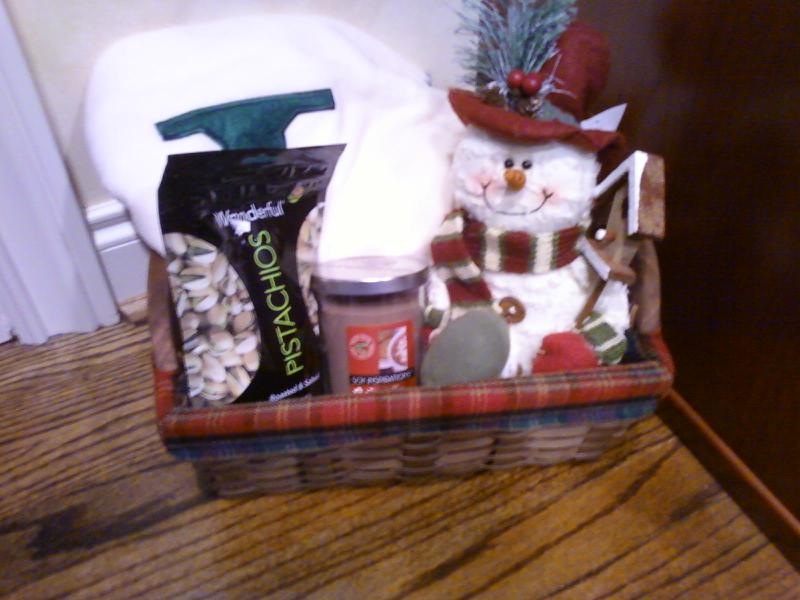 Winter Basket: lip exfoliater, face masque, lotion, WoodWick Candle and hot chocolate. (awesome gift for the college girl in your life)