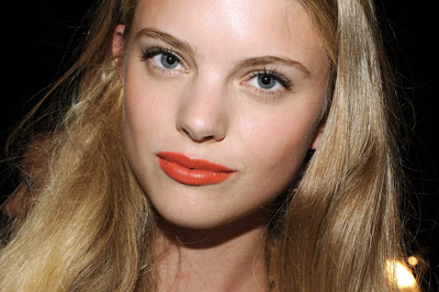 Bold and bright orange lips were popping up everywhere on the runway from bright to deep colors. However most of the lips had a matted look with the occasion sheen/gloss look.