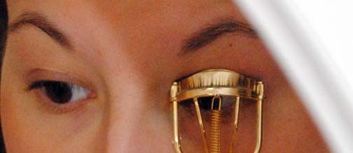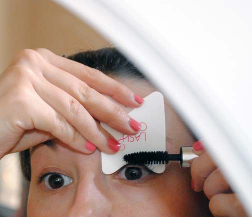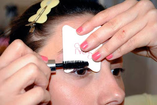 {make sure you hold it even with your eyelid and begin to brush your mascara onto your lashes}