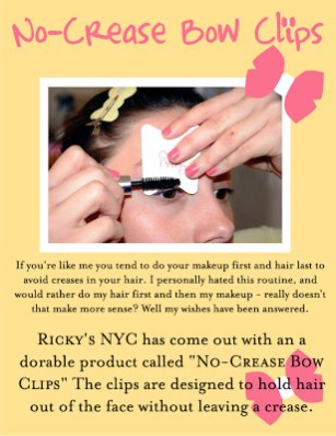 Ricky\’s No Crease Bow Clips is just simply amazing! I don\’t know how any girl who does her hair or makeup can live without these clips!
