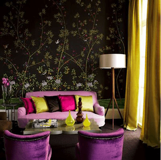 oooh. I really love the rich purple couches in the 2nd living room photo. And the wallpaper on that same one is just mesmerizingly gorgeous!♥ laurathe blog of worldly delights