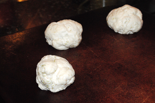 One loaf will make six rolls. I baked mine on my Pampered Chef Stone, but a cookie sheet and parchment paper will work as well. *bake at 325 for 15 minutes or until golden brown no longer doughy.