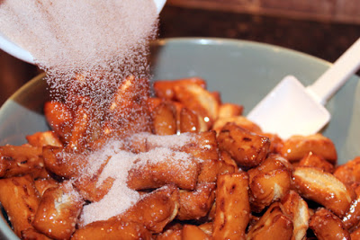 4. Sprinkle the cinnamon and sugar mixture over the pretzels; mixing to coat.