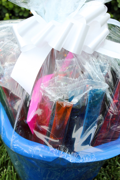 {perfect hostess gift to bring to someone on the water: freeze pops in a sand pail}