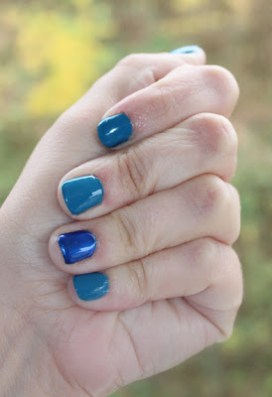 {current manicure: OPI \’Suzi Says Feng Shui\’ & \’Blue My Mind\’ accent nail}