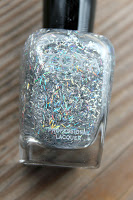 Electra has a clear base and features holographic bar glitter that resembles tinsel. Most likely you will want to wear this over another color, but since I am a huge fan of tinsel I would wear this alone.