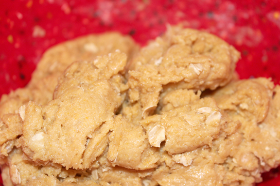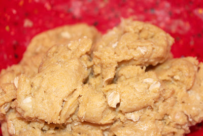 2. In a medium bowl combine the water, canola oil, eggs, peanut butter and vanilla; set aside.