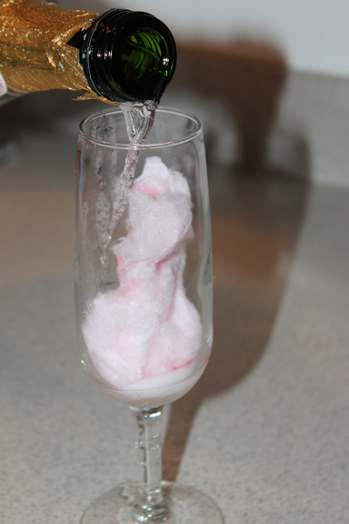 The new town I live in has a New Years Eve ball drop so I will be having a couple friends over before hand for hors d\’oeuvres and cocktails. Since my party color theme is pink and gold the signature cocktail is a “Pretty in Pink”. To make fill a glass with pink cotton candy and slowly pour champagne over it. The beverage is beautiful and you can even make it kid friendly by using 7-Up in place of the champagne. Remember to drink responsibly. xx