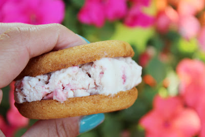 Living in a beach town it’s inevitable that any given day there is a good chance someone may stop over (unless of course it’s raining). I like to offer my guests a little something sweet and my go-to treat is ice cream cookie sandwiches. This weekend I paired homemade strawberry ice cream with store bought macaroon cookies.