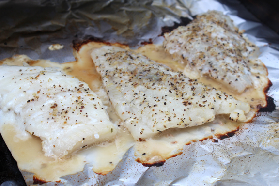 Step 1: Soak fish in milk (I did overnight) to mellow the fish taste and smell. When ready to cook season as desired. I used lemon pepper.