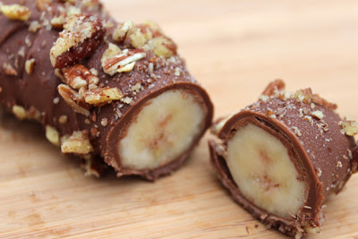 I have a serious sweet tooth, but since eating cake, cookies and ice cream isn’t the healthiest option I turn to frozen bananas. The bananas are not only easy to make, but delicious as well. I coated my bananas with milk chocolate and peanut butter as well as a variety of toppings my favorites are: sprinkles and pecans. You can use whatever you like.