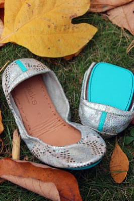 Have you heard of the shoe with the little blue sole? Tieks are the most versatile designer flat, they’re made of the finest Italian leathers and designed to fit in your purse, not to mention they form to your feet. You can learn more about the flats here.