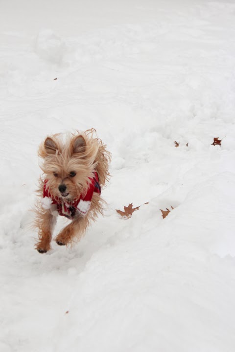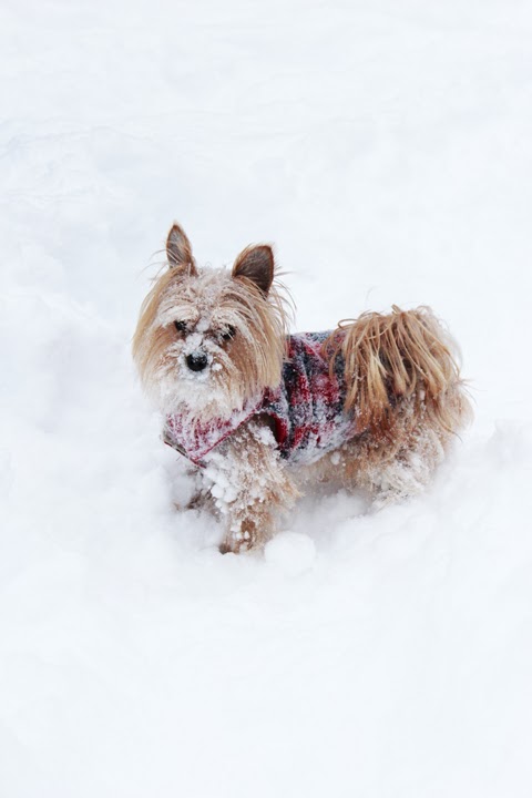 6. Don’t forget to keep warm. Always make sure you dry your dog off and remove any ice ball build up he may have. I have a heating blanket I always wrap Jack in when we come in from outside to instantly warm him up.