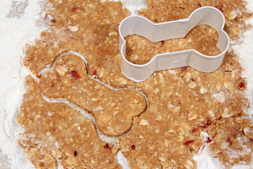 6. Roll the dough out onto a floured surface and cut with a bone shape (or whatever you desire).