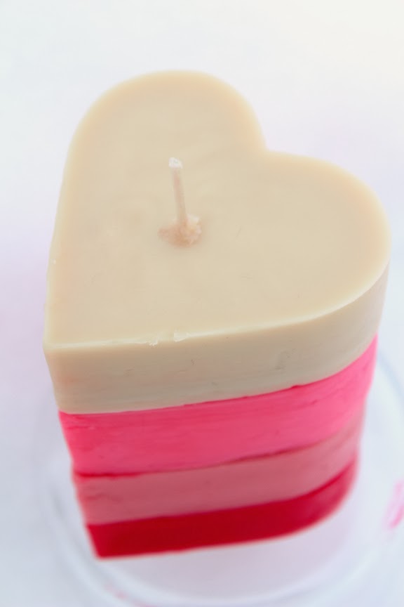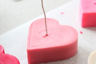 When February arrives all I can think about is; hearts and varies shades of pink. I combined my love for both to create this simple heart pillar candle. All you need is candles (I bought them from the dollar store), heart shaped cookie cutters and a wick.