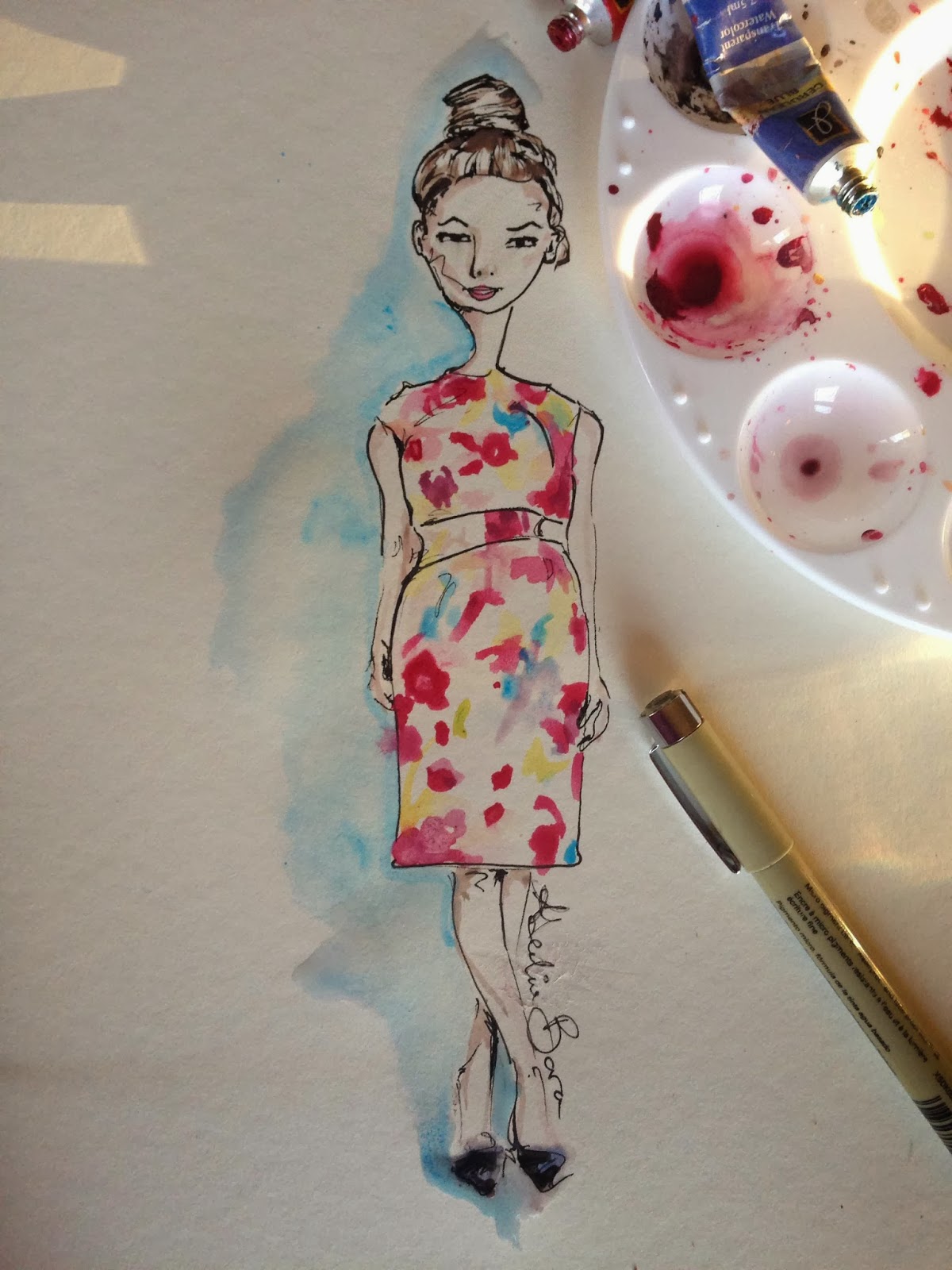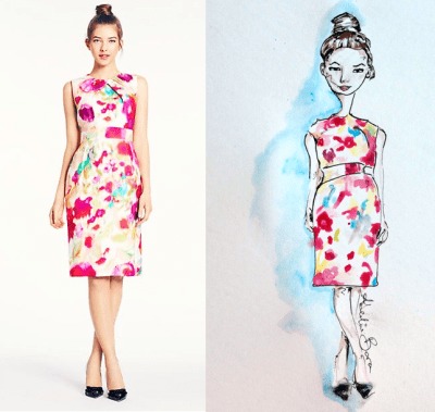 This spring, fashion and art come together with gorgeous brushstrokes that allow you to release your inner Picasso with watercolor print dresses in breezy fabrics. My favorite is the Bowden dress from Kate Spade that features vibrant watercolor floral prints that were inspired by trips to Paris and afternoons spent strolling through gardens. I recently had the privilege of working with Adaline a aspiring fashion illustrator who did a fabulous job recreating my favorite watercolor print dress. Check out Adaline\’s Instagram or Blog for more fashion inspired illustrations.