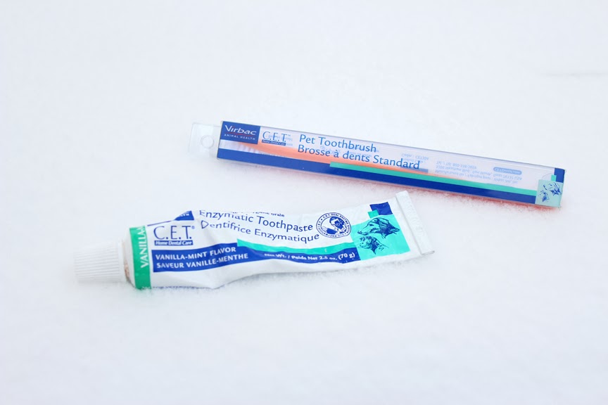 I buy Jack\’s toothbrush (I change it every month) and toothpaste (Vanilla Mint – I tried Chicken flavor before, but it really made his breath stink) from his vet.