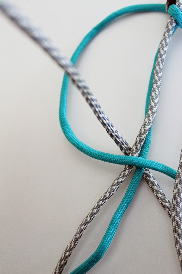 For example: for a 8 inch collar, I am using 4 feet of blue and 4 feet of patterned paracord.