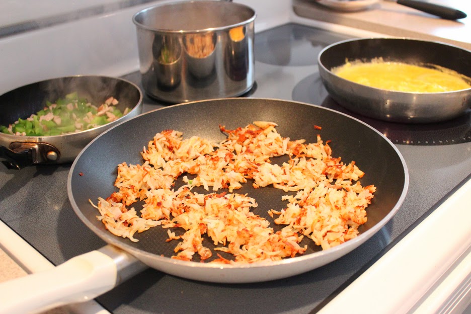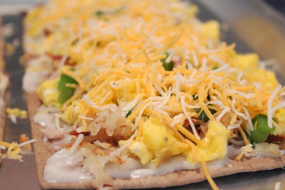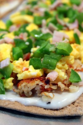 Breakfast pizza is the meal I usually make when my parents come to visit or other special occasions like my birthday yesterday. All you need is Flatout thin crust (you\’ll want to heat them at 350 for about 5 minutes), breakfast gravy (I made a McCormick packet), hash browns (I cooked ones from the frozen food section), scrambled eggs, Canadian bacon, green pepper and cheese. It\’s simple to make but time consuming.