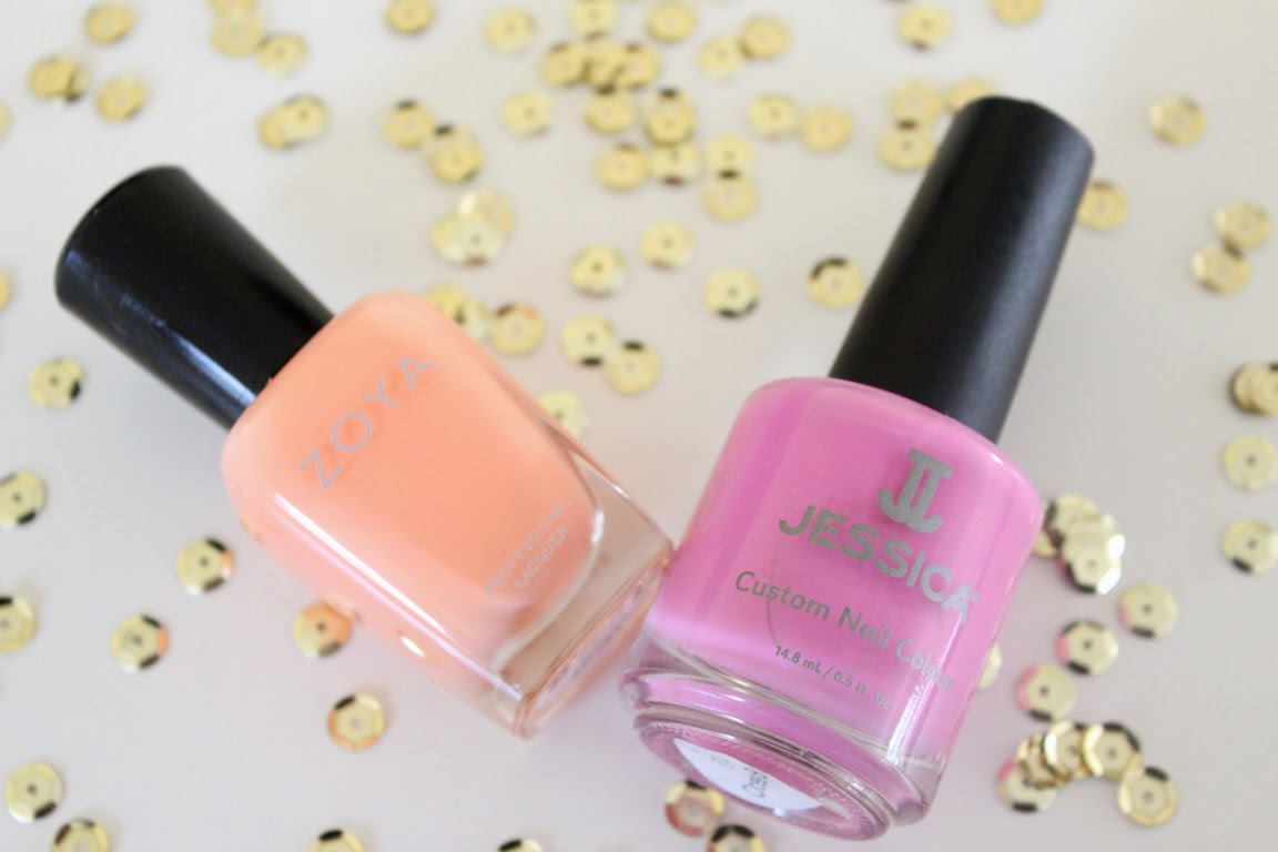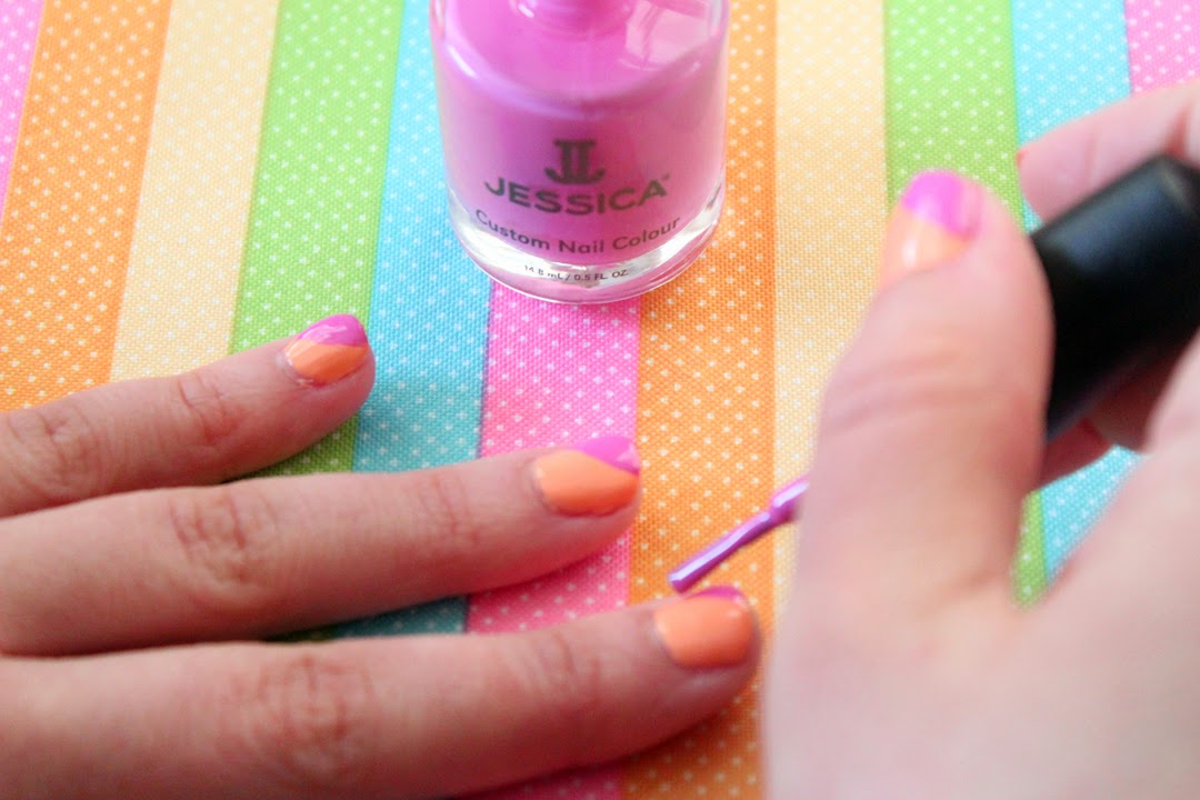 The diagonal french manicure is a chic and fun look that is so simple to create. I polished on a base coat, followed by two coats of Zoya \’Cole\’, then swiped on a diagonal coat of Jessica Cosmetics \’Ocean Bloom\’ and lastly a top coat. It\’s a simple and chic look perfect for spring.