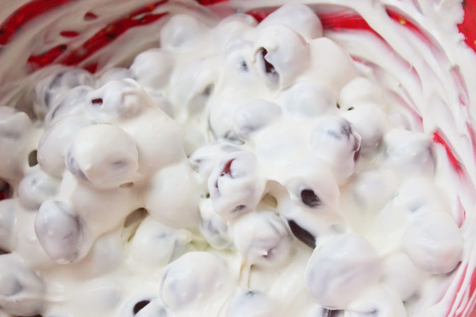 3. Add grapes, mix until incorporated.