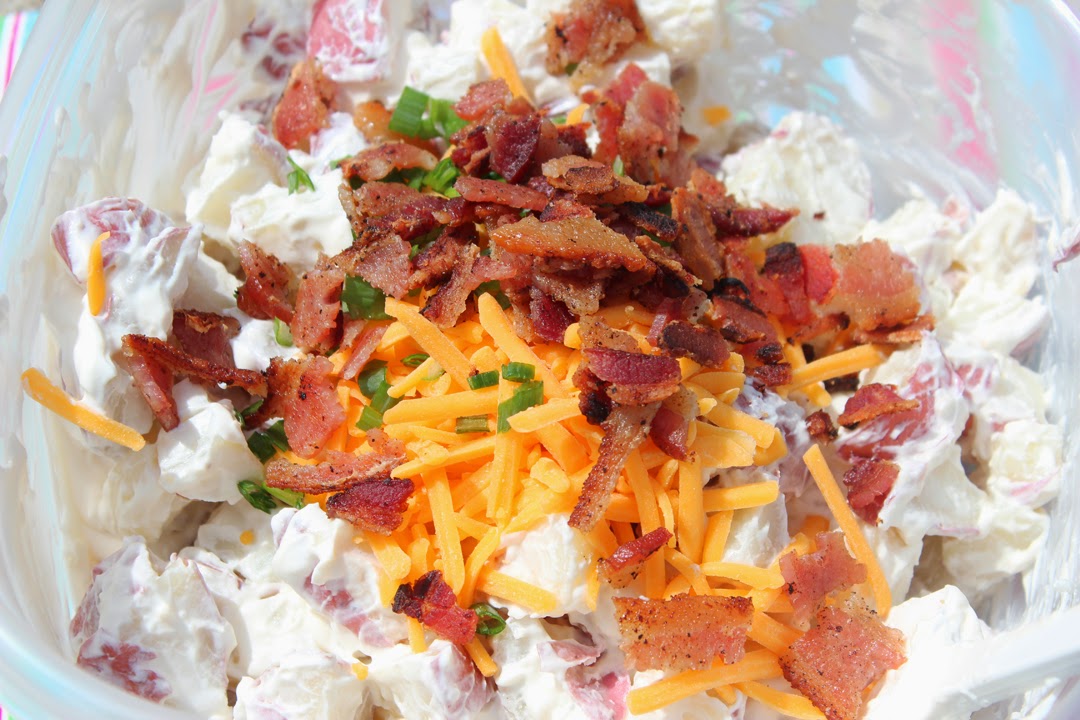 Lately my weekends have been filled with plenty of cookouts including one fabulous barbeque this past Friday on the beach. I was asked to bring potato salad, and instead of my go-to recipe I tried to recreate my favorite loaded baked potato salad from