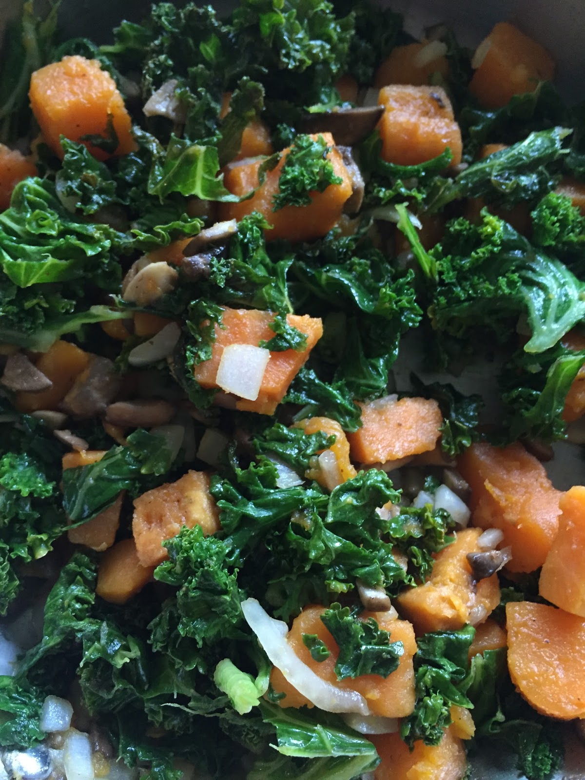 One of my friends moved in with me for the past month. She\’s vegan so a lot of the meals we cooked together followed the vegan lifestyle. One of my favorite dishes was this hot sweet potato and kale salad so I had to share it with you.