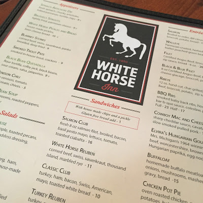 I’m not a huge fan of chain restaurants. I tend to go for local favorites in new towns or my hometown. The White Horse Inn restaurant was established in 1850. It closed for a little while a new owner took over and renovations happened. The restaurant reopened last fall and recently one of my friends highly recommended that I take the trip out to Metamora to try it. The inside is decked out in horses, Edison bulbs and old time treasures – while outside you can take a horse drawn carriage ride and in the winter the carriage ride becomes a sleigh ride.