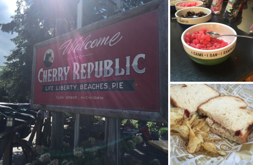 M22 offers a plethora of outdoor adventures, and is one of my favorite places to drive around and make stops – especially in the fall. On a recent trip, the weather was less than perfect; in fact I spent most of the time dodging raindrops – although I did manage to make it to Sleeping BearDunes. Sleeping Bear Dunes are located just west of Traverse City, and while the trek up them is tiring the view is amazing, and even better when you make it down by Lake Michigan (which I did not do, because it started raining). Once you finish the dune climb head over to Cherry Republic for samples, ice cream, delicious food and more!
