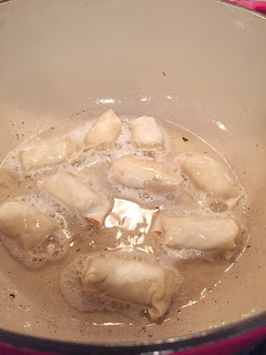 14. Fry three to five egg rolls at a time until golden brown, turning once (about 3 minutes).