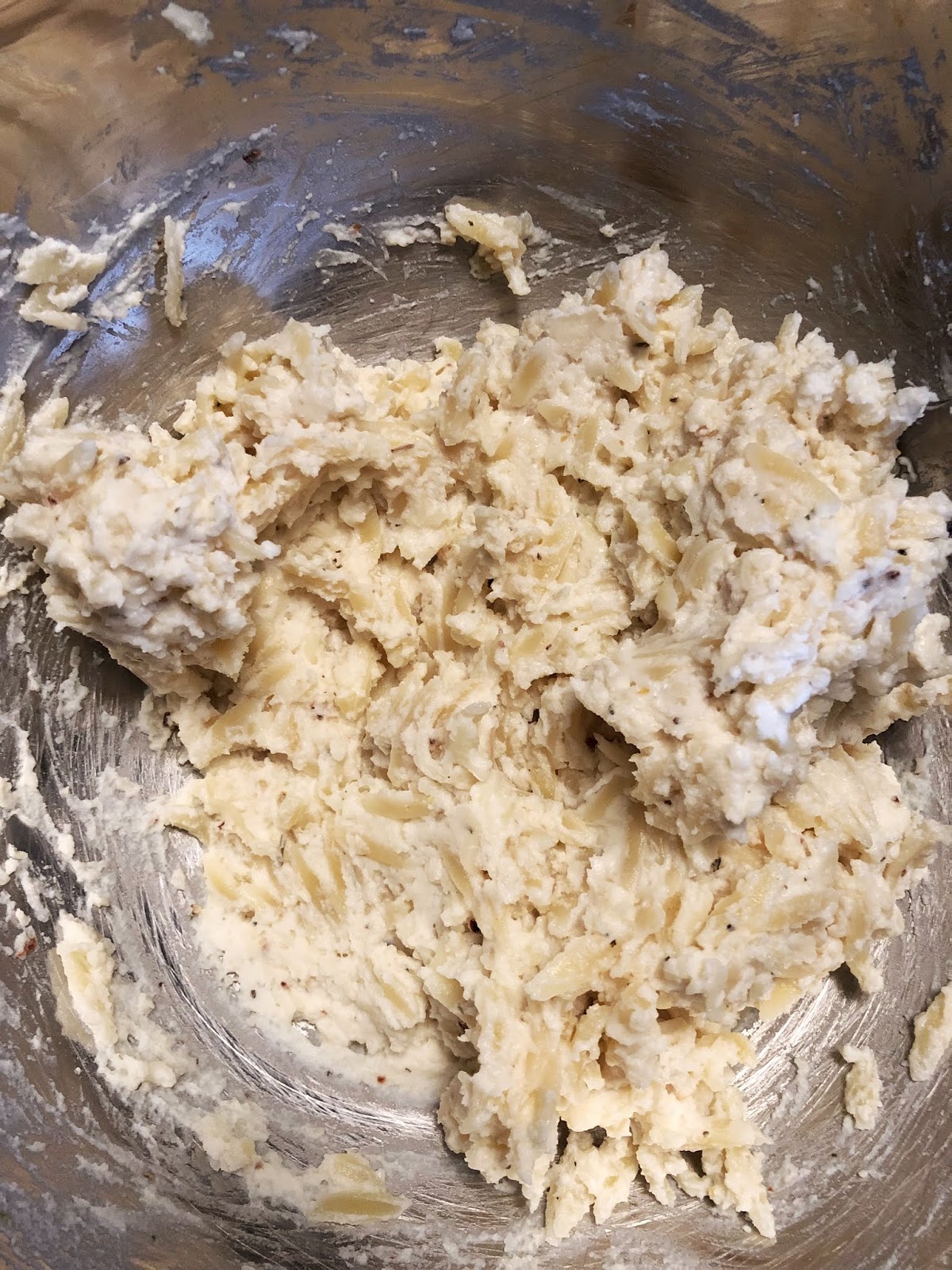 9. In a bowl combine orzo noodles, cheeses and seasoning.