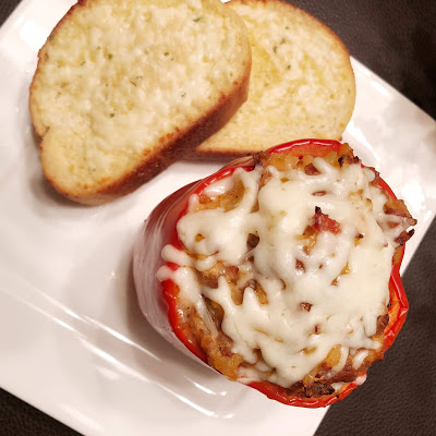 I have a confession to make… when it comes to dating one of my prerequisites with a guy is that he can COOK! Yes, I know how to cook – however it’s so nice when you can work in the kitchen with someone who means a lot to you and create a great meal together. Not to mention, it’s also nice to have someone cook for you once in awhile without you always having to be the one to cook. Last weekend we were both getting hungry at dinnertime, instead of us going out to dinner my boyfriend looked through his cookbook for something we could make together. He ended up finding the Italian Orzo Stuffed Peppers recipe, so we promptly headed to Kroger to gather the ingredients we needed. These stuffed peppers were so much better than I thought they would be, so obviously I had to share the recipe with all of you. We paired our peppers with Texas toast garlic bread.