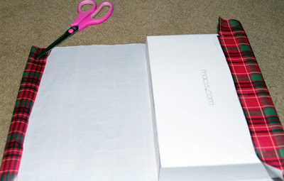 Step 1: Place the box face down on the paper, and pull up the short side and secure it with a piece of tape.