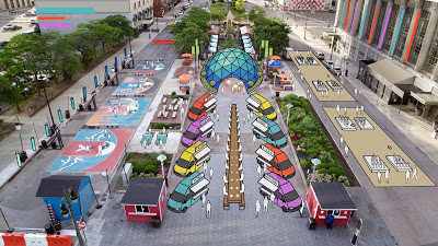 Current vision boards show activation sites throughout downtown Detroit, including but not limited to Grand Circus Park, Woodward Avenue, Campus Martius, Detroit RiverWalk, Hart Plaza and perhaps state parks such as Belle Isle.