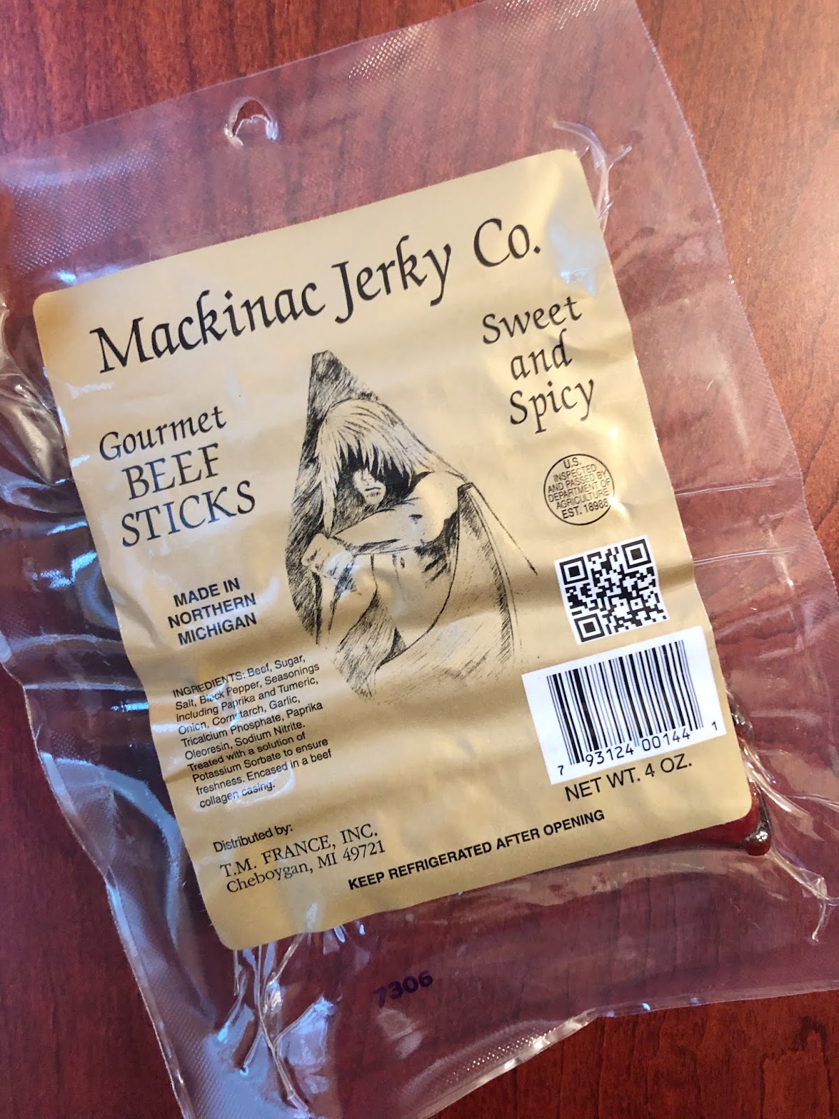 Mackinac Jerky company makes beef jerky the slow and traditional way. This process ensures that everything is tender and delicious. Made in Cheboygan, Michigan I highly recommend giving Mackinac Jerky a try on your next road trip.