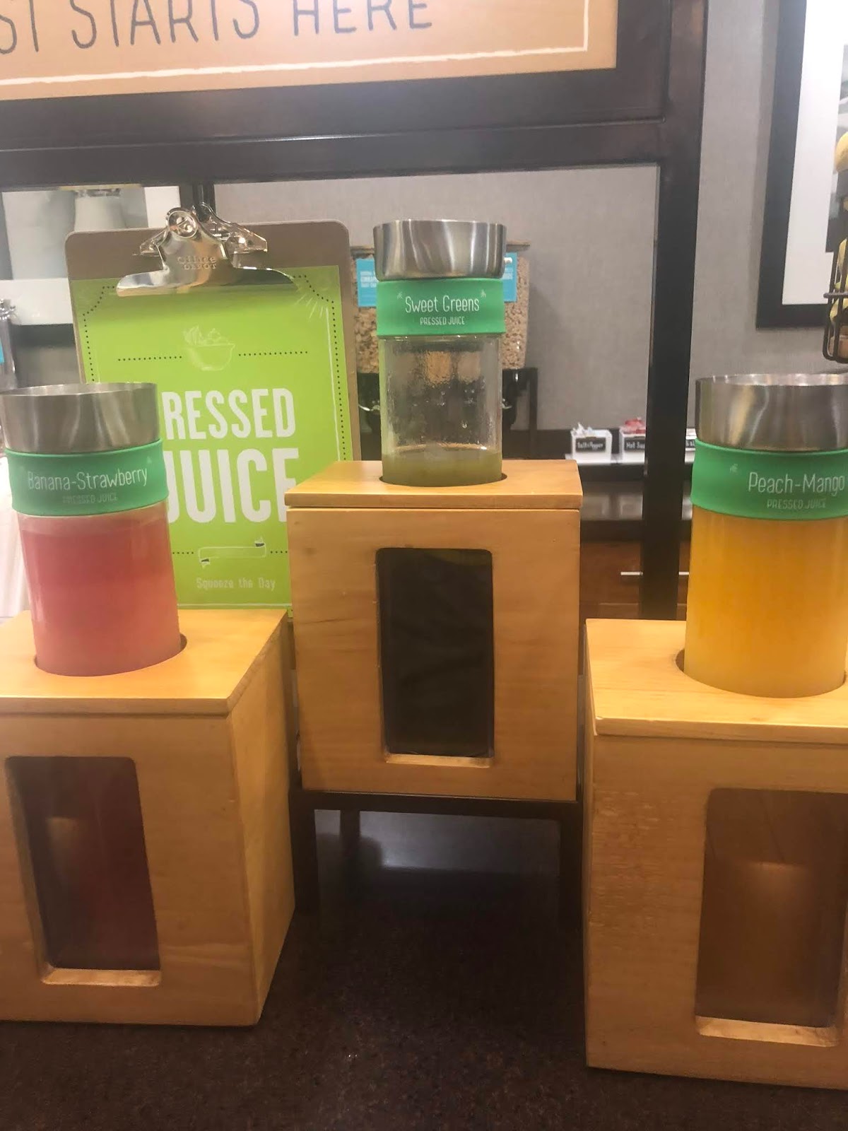 In the morning, before hitting the road to head back to Detroit, I went downstairs for Hampton’s free hot breakfast buffet. Let me tell you this is not your typical breakfast buffet. While it had some quintessential breakfast essentials like waffles, bagels, toast, and cereal you could also find oatmeal with plenty of yummy toppings, turkey sausage, egg white omelets, yogurt, fresh fruit, a freshly-squeezed juice bar and much more.
