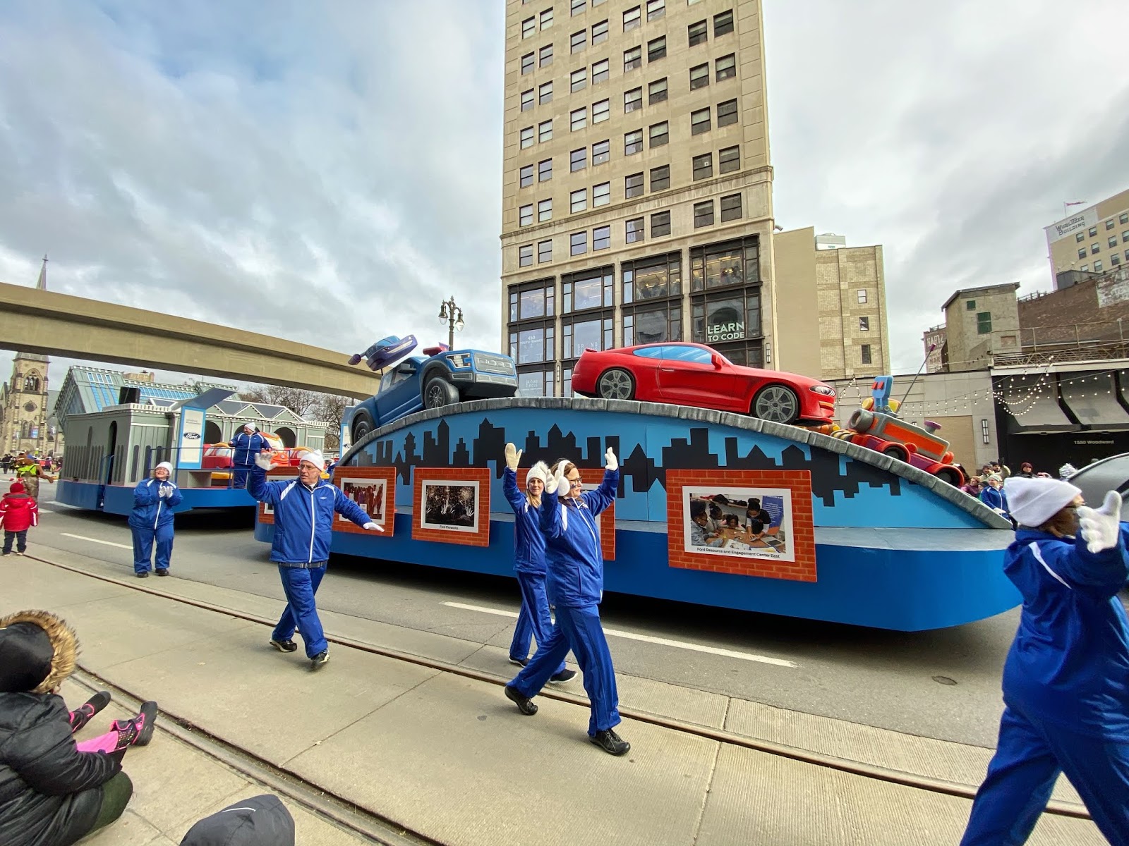 For the past few years, Betsy and her family have been heading down to Detroit to watch America\’s Thanksgiving Parade. While I have watched the parade many times on television, and have seen a few floats and balloons when I would run past them during Detroit\’s Turkey Trot – I have never physically been to the parade. I met Betsy at her family\’s home bright and early this morning to head down to Detroit. First, we grabbed breakfast at Hudson Cafe in downtown Detroit along Woodward Avenue. I ordered the Strawberry Shortcake French Toast and let me tell you it was incredible. After breakfast, we walked along Woodward Avenue to find the perfect spot to watch America\’s Thanksgiving Parade.