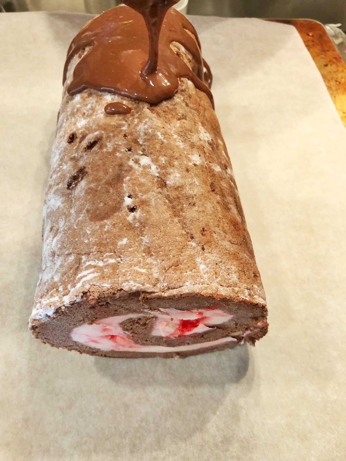 18. Starting at the narrow end begin to roll the cake up in the towel.