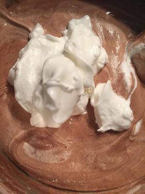 11. When thoroughly combined, fold the chocolate batter into the egg whites a little at a time.