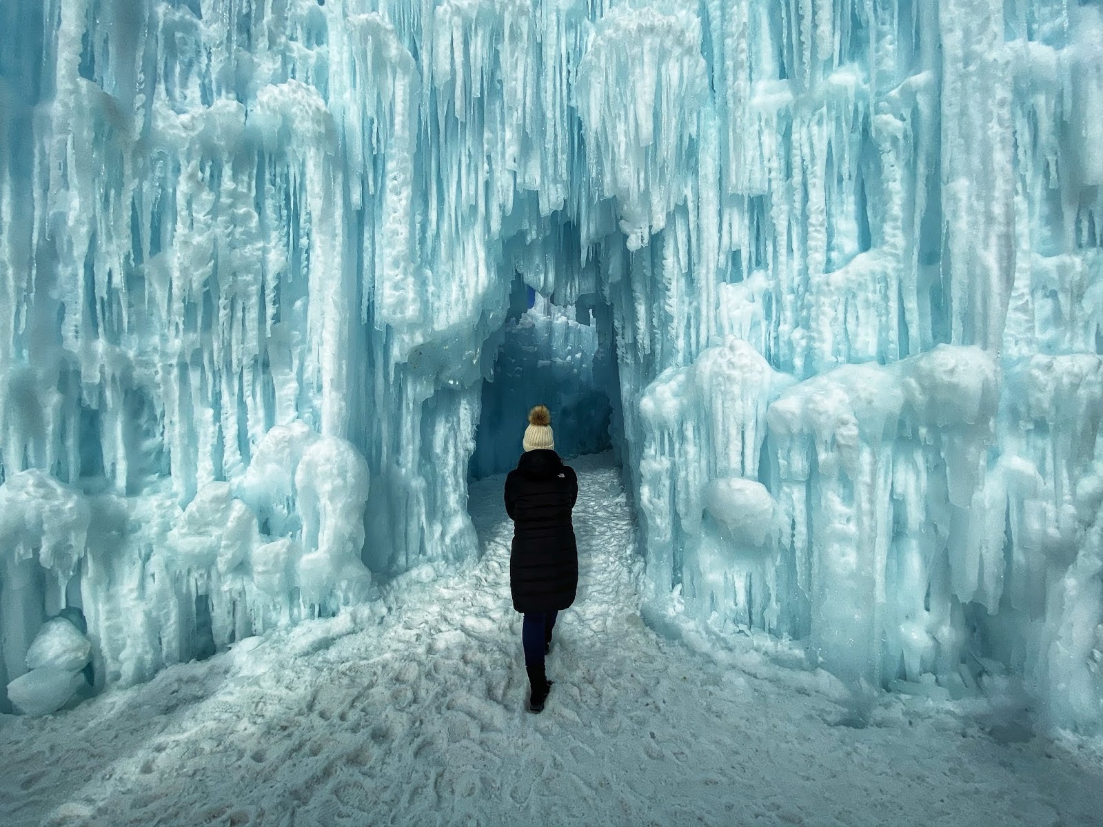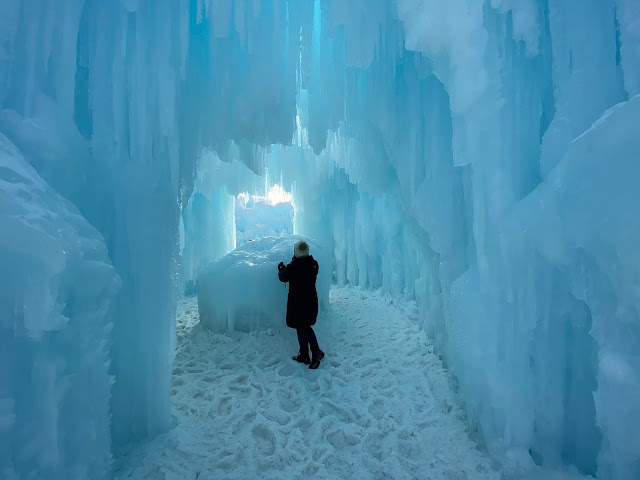 Take pictures, walk around, go down the slide, and enjoy the gorgeousness of the Ice Castles.