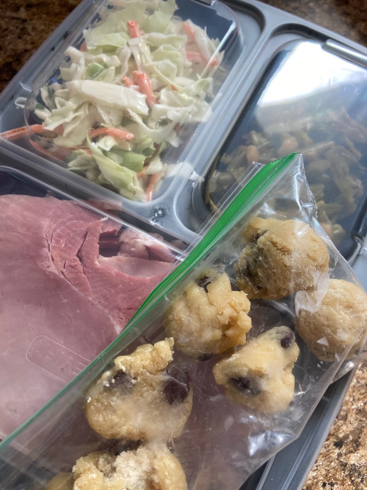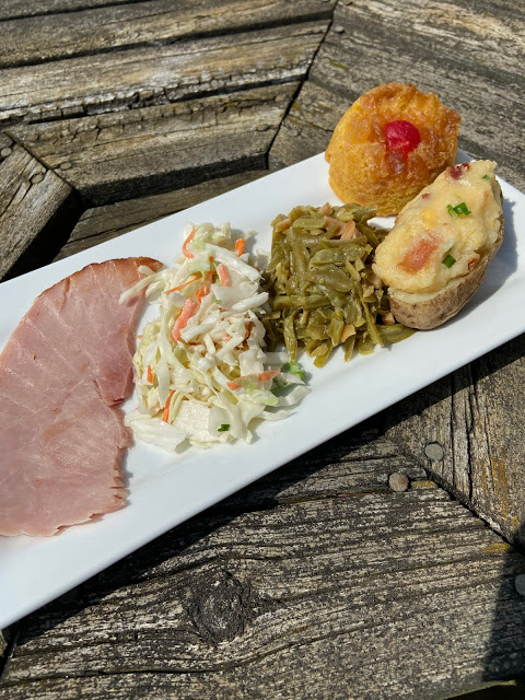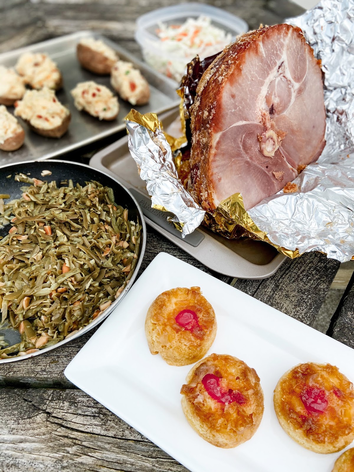 My family is usually Honeybaked ham only fans, but this year I got a Dearborn Brand Dearborn Spiral Glazed Ham and let me tell you it was out of this world amazing! Along with the ham, I made twice-baked potatoes, coleslaw, lemon almond green beans and there was an option of chocolate chip cookies or pineapple upside-down cupcakes for dessert. We had so much food, that we decided to make a drop off to my parents, and one to my aunt as well.