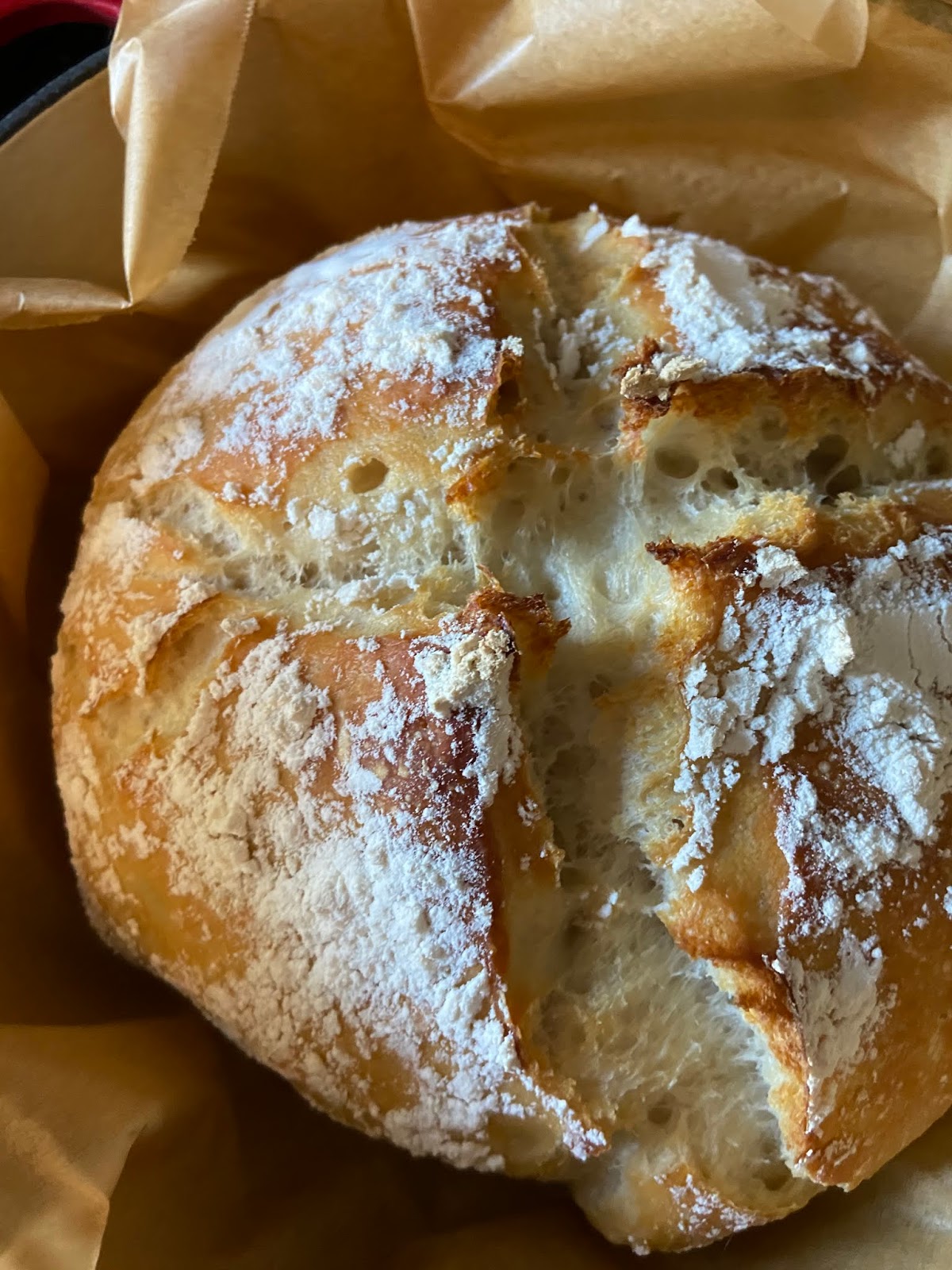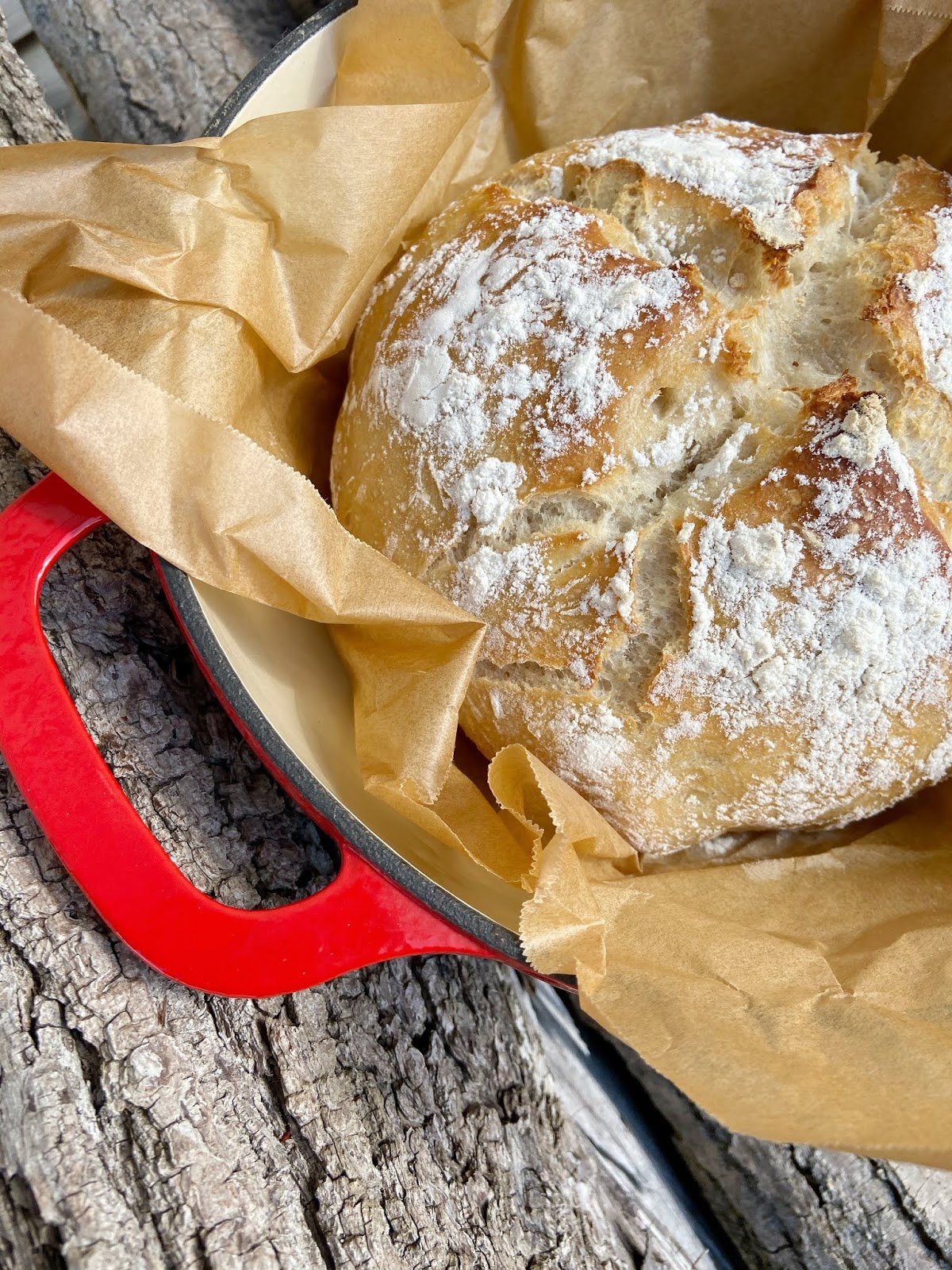 If you love bread, today I have something absolutely amazing to share with you. How does foolproof no knead artisan bread sound to you? Pretty good, right? This no knead bread recipe is so easy to make, and you do not need to have any kitchen skills to make it. With just five simple ingredients, you will be able to make the perfect round loaf of bread. With just some yeast, salt, flour, sugar and water you can tell everyone that you made your own bread! This recipe will provide you with a loaf of round artisan bread that is perfectly golden and crunchy on the outside, but soft on the inside – yum. The bread is perfect for dipping in your favorite soups, oils, toasting and covering with jam, adding as an accent to a charcuterie board and more. This fool proof no knead bread is about to become a staple in your kitchen.