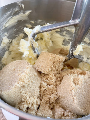 4. In a separate bowl, beat butter and both sugars for 2 minutes, until light and fluffy.