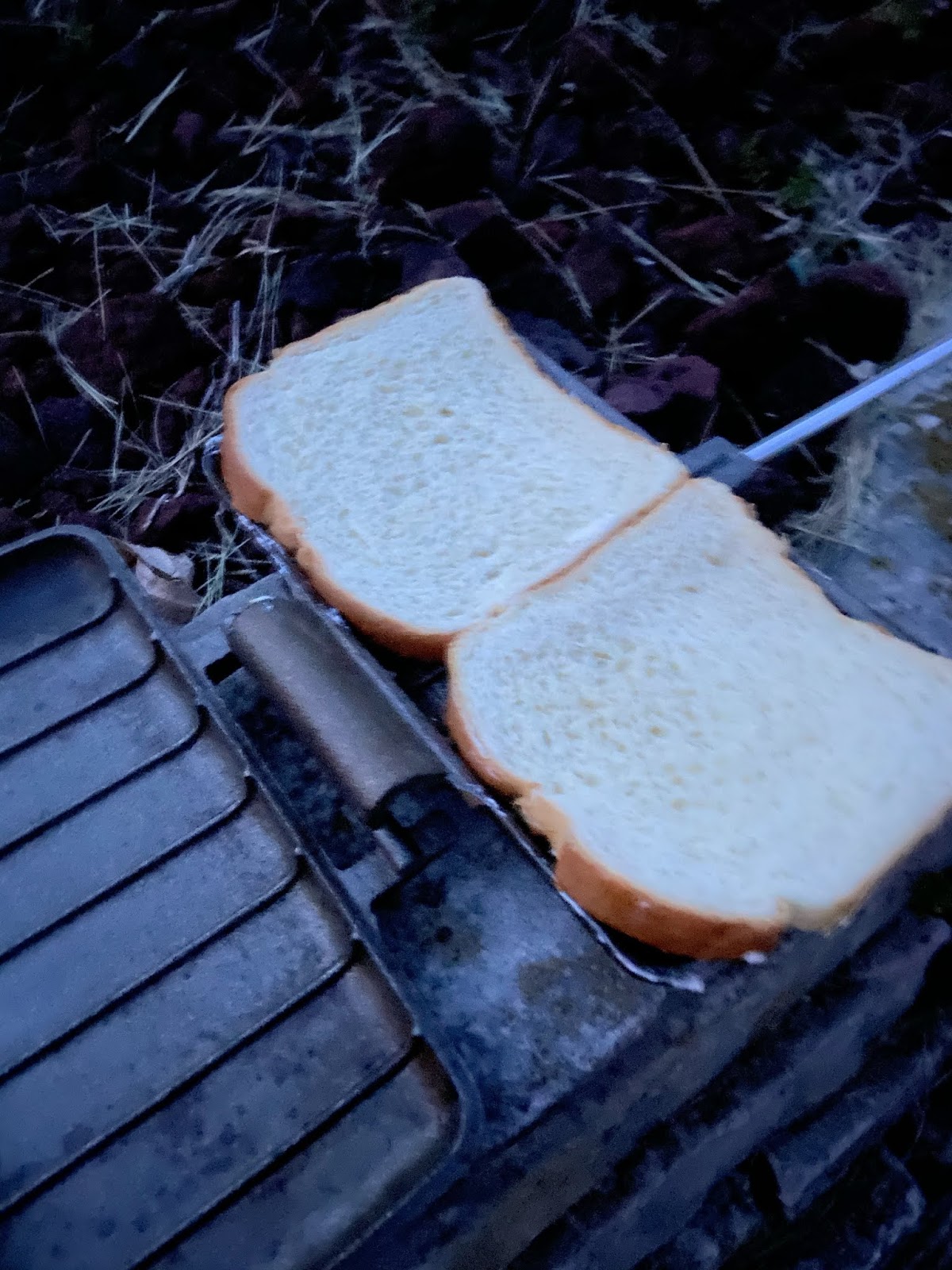 2. Place the buttered side of one slice of bread down on the pie iron.