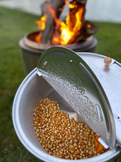 popcorn over a campfire, but today I am sharing my favorite way, which is with an open fire popper.