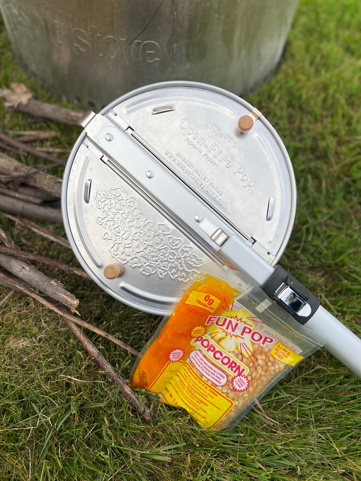 popcorn over a campfire, but today I am sharing my favorite way, which is with an open fire popper.