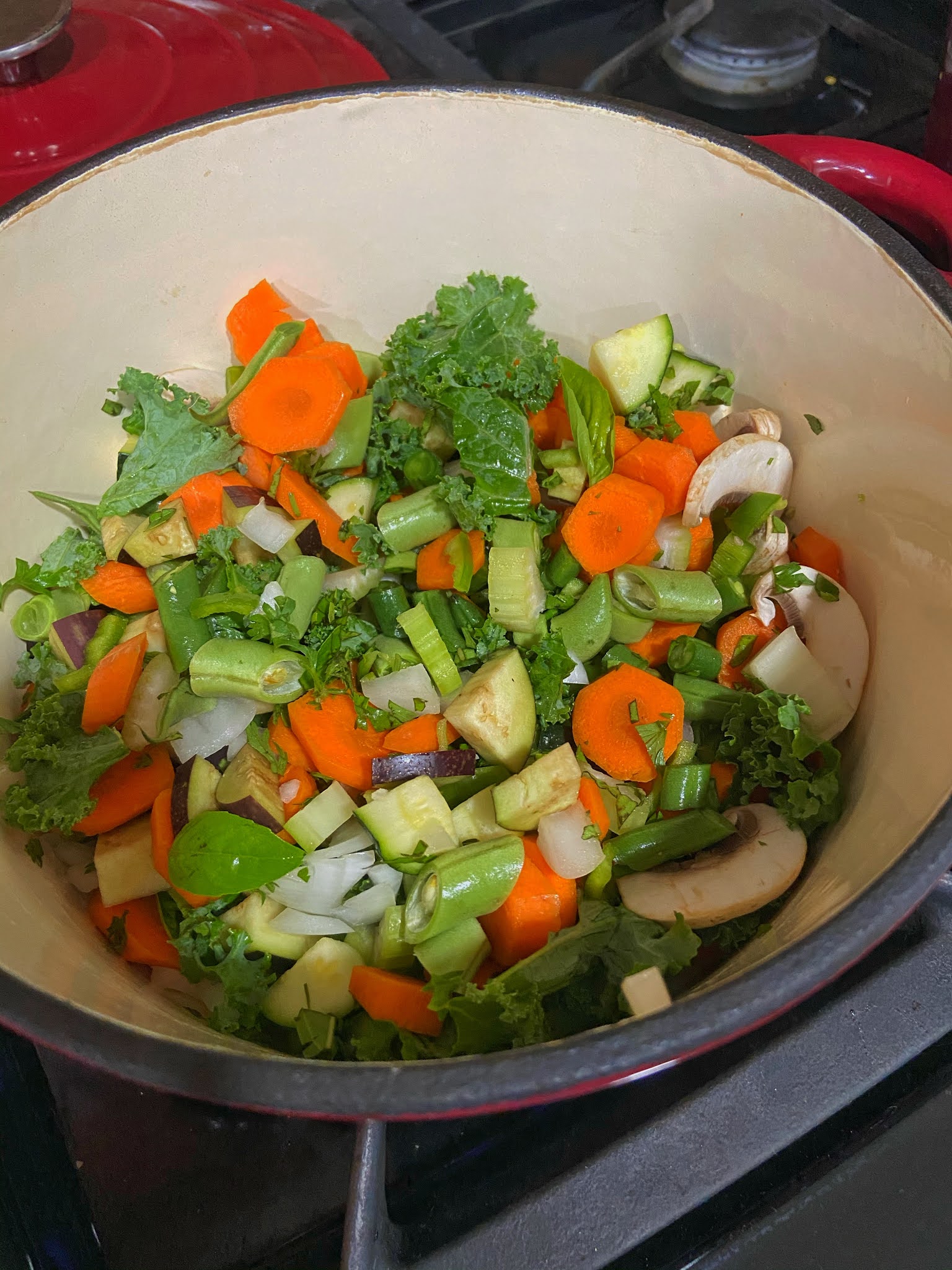 This past weekend the temperature got a little cooler (well, here in Michigan anyway), the weather got wetter, and the garden is producing at its full potential. \’Tis the time of year for my Garden Vegetable Soup – or as I like to call it Everything in the Garden Soup. This pot of comfort is perfect for chilly nights, and did I mention it is healthy too?